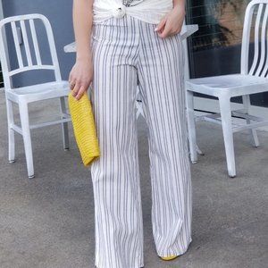 Don't miss out on our Resort Vibes Navy Striped wide legged pants.. Elevate your weekend / Vacay style with this fab spring inspiration. Designed with an elastic waist band and wide cut pant legs.. Styled with our Have Some TEA Tee Shirt.