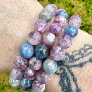 8.5-9mm Lepidolite and Kyanite in Quartz | Crystal Healing | Natural Crystals | Stacking Bracelets | Chakra | Unique Gift | Crystal Jewelry | Beaded Bracelets | Mica | Rare