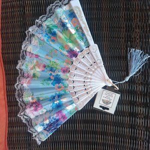 ❖ Lt. Blue n Lace w-Multi-Colored & Silver Accent Floral Design ❖ Measurements: approx. 9” (L); Opened is: approx. 17” (L); NWT; never used.