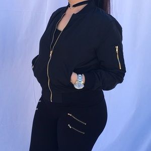 🎀Black lightweight bomber jacket with orange interior. Pair with one of our chokers! ONLY 1 LARGE LEFT!