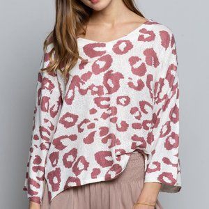 👄POL LIGHTWEIGHT SWEATER TOP FEATURING A RASPBERRY LEOPARD PRINT ON A WHITE BASE
