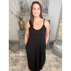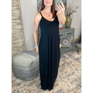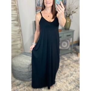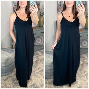 ❤️🔥RESTOCKED V-Neck Pocket Spaghetti Maxi Dress Black 1022