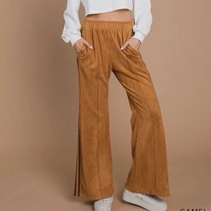 ✨RESTOCKED✨Camel Wide-Leg Faux Suede Pants with side stripe