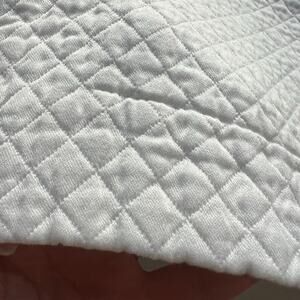 The Restoration Hardware Diamond Matelasse 15 x 19 Pillow Sham Cover in Ivory Cream is a stylish and contemporary addition to any bedroom. Made of 100% cotton, this sham features a luxurious diamond pattern that adds a touch of sophistication to your bedding ensemble. The size and neutral color make it versatile for coordinating with a variety of decor styles, while the high-quality material ensures durability and comfort. Perfect for adding a touch of elegance to your bedroom, this pillow sham is a must-have for those looking to enhance their sleep space with a touch of luxury.