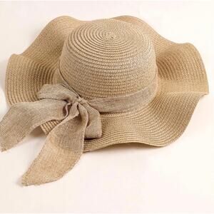 RETAIL $30 Natural Color Straw sun hat with Burlap Bow Band*SO PRETTY