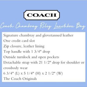 RETAIL Coach Quilted Riley Top Handle Lunchbox Bag- Washed Denim/Light Chambray