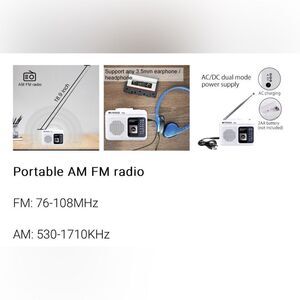 RETEKESS Cassette Player AM FM Portable Radio. Two power supply methods. USB & battery . Great for power outage keeping connected to the radio. Requires two AA batteries. NWT & Smoke free/Pet free home. See ALL photos for complete description/details.
