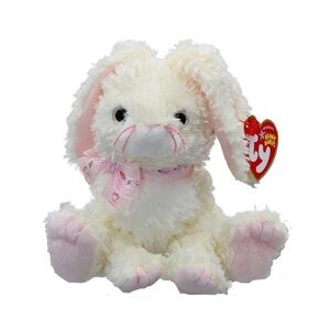 Charming Ty bunny plush in soft white and pink. Ideal for small pets to snuggle and enjoy. Delightfully cuddly and cute.