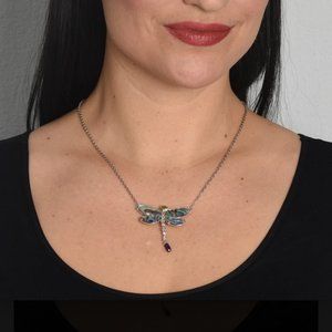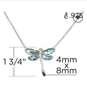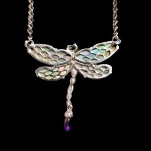 Brand New Carolyn Pollack Limited Editions (Recently Retired) 925 Sterling Silver Dragonfly pendant necklace with Abalone Shell, Purple Amethyst and Green Peridot gemstone