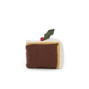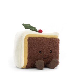 When you're full of food and feeling snoozy, snuggle Amuseables Slice of Christmas Cake! Chunky-cheery, this fluffy brown cake has suedey layers of marzipan and icing. With a dapper green and red holly quiff, bobbly boots and a friendly grin, this squashy slice is full of sweetness.
