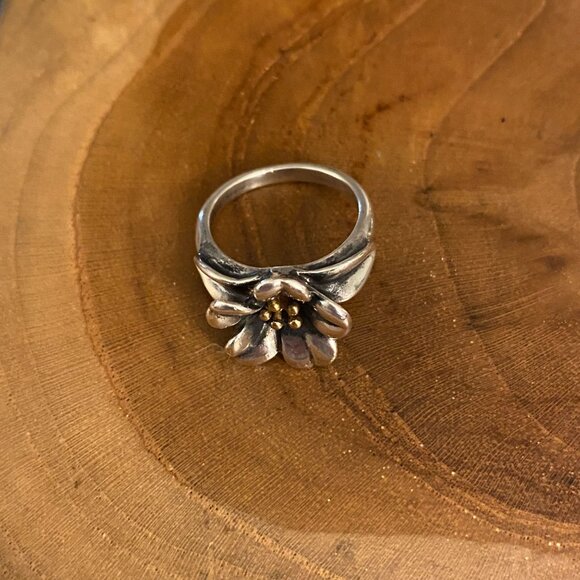 James Avery April Flower Ring. Retired design. Size 7. 925 sterling silver and 14K gold. Stamped with James Avery hallmark.