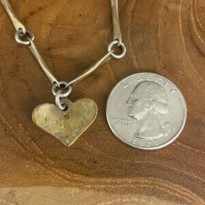Jeep Collins bar link charm bracelet with heart charm. Retired design. 925 sterling silver and brass. Stamped with Jeep Collins hallmark.