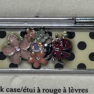 RETIRED NIB Pier1 Jeweled LIPSTICK Holder | Ladybug Flowers Butterfly