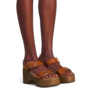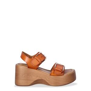 RETRO 70'S GROOVY STYLE BROWN FAUX LEATHER PLATFORM STRAP SANDAL - NWT - SZ 8