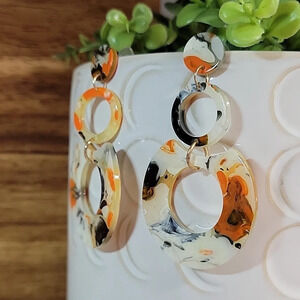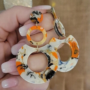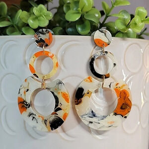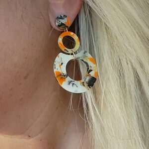 Watercolor vintage marble style swirl on lightweight lucite with hypoallergenic posts.