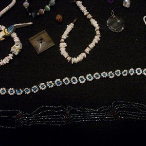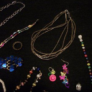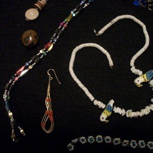 THIS IS SUCH A GREAT GROUP OF JEWELRY, PARTS & PIECES. WE DO NOT BREAK UP LOTS. REDO RESELL GIFT CHANGE, ADD WEAR MADE ART SO MANY THINGS YOU CAN DO. OF NOTE: BEAUTIFUL MAGNETIC COLORED BEADS, PRETTY BIRDS PUKA SHELLS, MORE PUKA SHELLS. STATEMENT NECKLACE MISSING 1 DANGLE. COLORED BEADS ON BRACELET, SINGLE EARINGS MADE INTO PENDANTS OR SEW ON. TINY BEADS NECKLACE AND ETC. WITH WEAR YET PLENTY TO SHARE. ENJOY FUN AND JEWELRY 2ND GROUP.