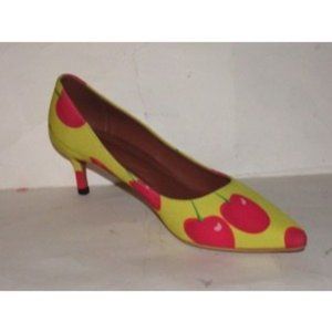 For sale is an amazing, mod 1960's, pair of vintage, size 9M, almond shape toe, bright yellow fabric with a bold red and green cherry design, 2.5" kitten heels ! A perfect look for you with a lot of style! The shoes are the perfect pair of heels that will go with be that perfect splash of color for almost any outfit! All measurements are approximate. LP*