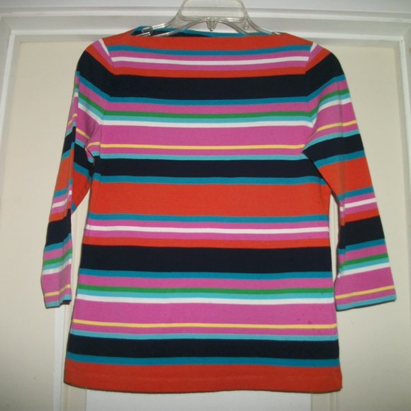 RETRO FRENCH GIRL STYLE. THIS IS SUCH A CUTE TOP. IT SEEMS TO BE A MIX OF COTTON AND SPANDEX. THERE ARE NO TAGS ON IT. IT HAS A GOOD FEEL TO IT. IT HAS NICE COLORS. FROM UNDERARM TO UNDERARM ALL THE WAY AROUND IS 34 INCHES. WITH SOME WEAR YET PLENTY TO SHARE WITH YOU LUCKY BUYER. ENJOY THE WEATHER. 2ND GROUP. THANKS RETRO FRENCH GIRL STYLE.