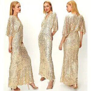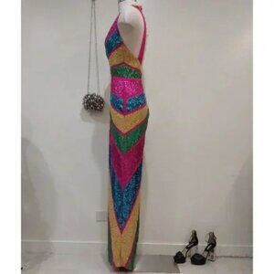 MUST HAVE! An absolutely STUNNING, chic, and sexy dancing queen jumpsuit! Inspired by the disco fever era, it's one of those bold, high-fashion items that create an instant drama. It comes in vibrant colorblocking Fuchsia, Yellow, Green, and Blue sparkling sequins that look amazing in any light. Futuring flattering fitted bodice with sexy deep V neckline and statement low back, zip fastening and button closure on the back of the neck, flowy wide-leg pants, and soft full chiffon lining in Fuchsia/ Pink. This striking piece looks and photographs very well from any angle and will be perfect for any occasion or photoshoot. Make the most of this stunner by teaming it with a sleek up-do, statement earrings, a mini clutch, and platform (strappy) sandals. Made from high-quality non-stretchy 100% Polyester. Size 4 US. Approx measurements flat: Waist 13.75", Inseam 34.25". The original price is $284. NWOT. Comes from a clean, smoke-free home.