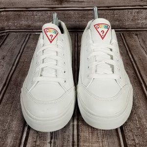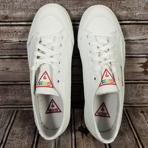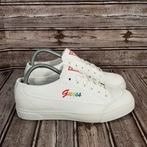 RETRO GUESS Women's 8.5 B White Leather Sneakers Shoes Rainbow Embroidery NWOT