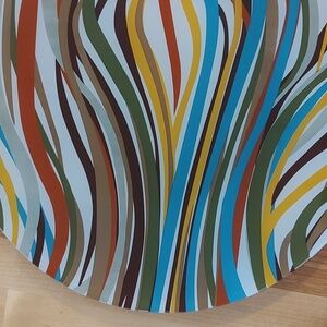ADD SOME GROOVE TO YOUR NEXT PARTY with this multi colored super retro large round serving plate. You will NOT find a flaw in this happy wonder!