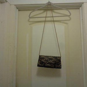 RETRO STYLE GREY & BLACK LACEY ENVELOPE PURSE