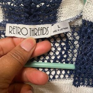 RETRO THREADS navy blue white stripes long sleeve knitted cardigan size L