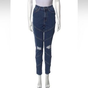 RETROFETE Allegra Skinny Sz 28 Modern Denim Jean Distressed Asymmetrical Seams