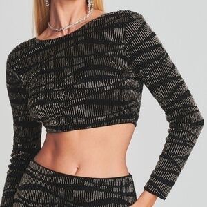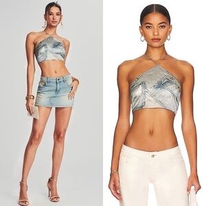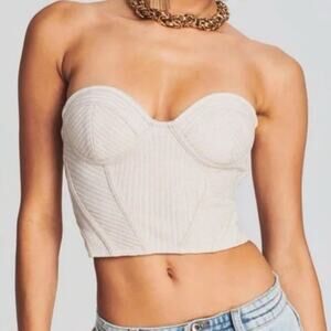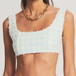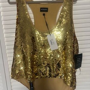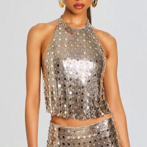 RETROFETE Audra Sequin Knit Tank Top Nude Tan Gold Crop Back Zip Size Large NEW