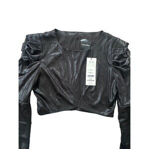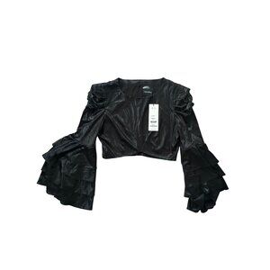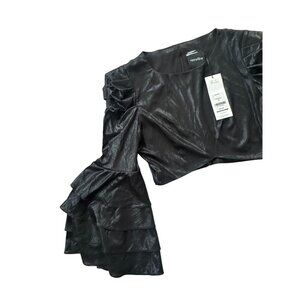 RETROFETE Bateau Black Ruffle Sleeve Crop Blouse Size Medium