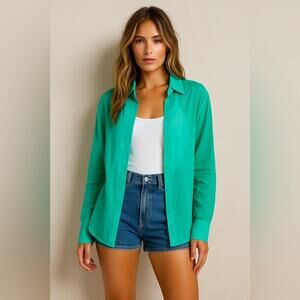 RETROFETE Button Up Blouse Top Turquoise Green Lightweight Long Sleeve Medium