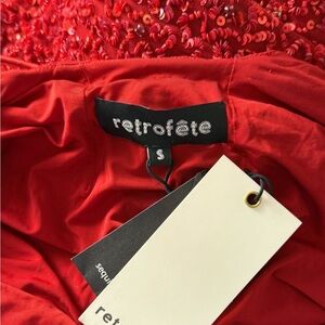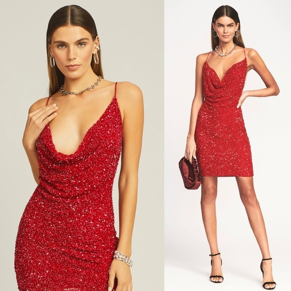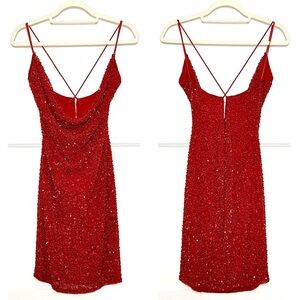 RETROFETE Cherry Crystal Sequin Beaded Draped Neck Sleeveless Open Back Dress S