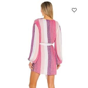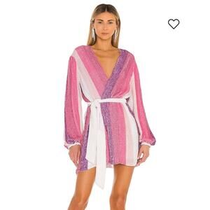 RETROFETE Gabrielle Sequin Robe Mini Cocktail Wrap Dress Belted Long Sleeve NEW