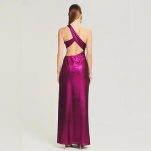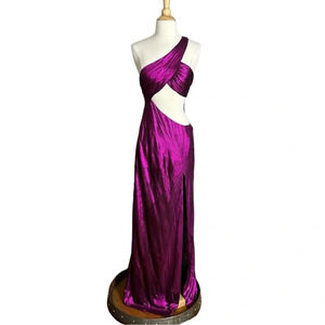 RETROFETE Galena One Shoulder Maxi Dress Metallic Magenta Formal Evening Gown, M