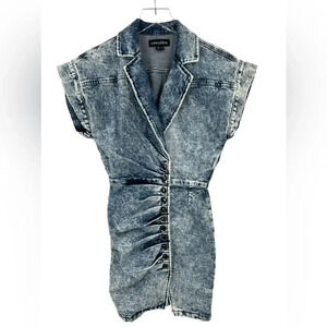 RETROFETE Gia pleated acid-wash denim mini dress size XS B1504