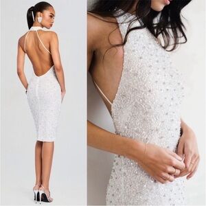 RETROFETE Hand Stitched Crystal & Sequin Sleeveless Halter Open Back Dress S