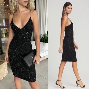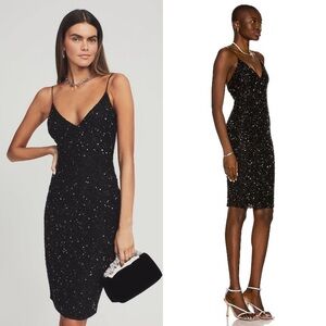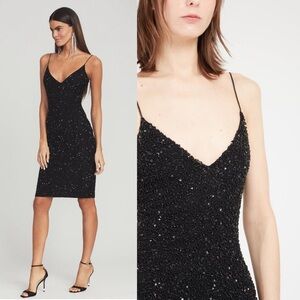 RETROFETE Hand Stitched Crystal & Sequin Sleeveless V-Neck Sheath Slip Dress XS