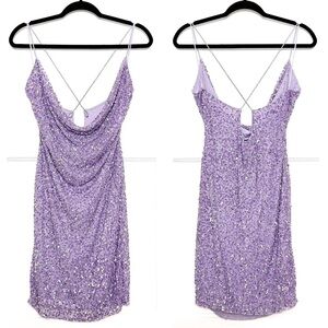 RETROFETE Lilac Crystal Sequin Beaded Draped Neck Sleeveless Open Back Dress M