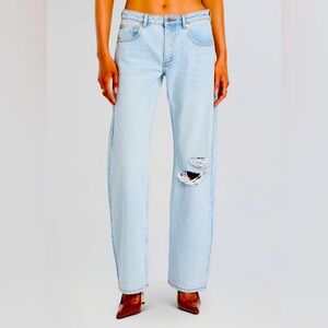 RETROFETE Maggie 90s Low Rise Distress Denim Rip Knee Straight Leg Jean Sz 27