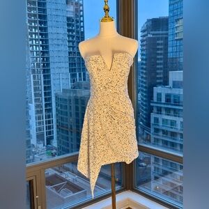 🆕 RETROFETE 🧿 NWOT Omer Sequin Dress, White & Silver, Sz XS (UK 8 US 4 )