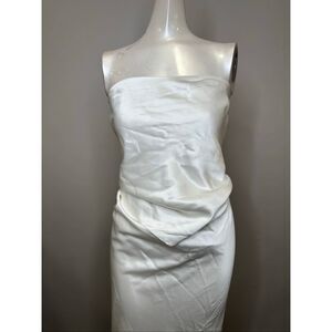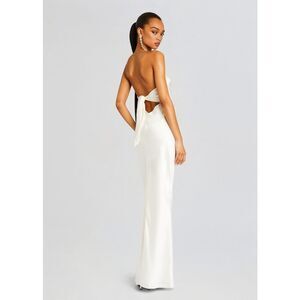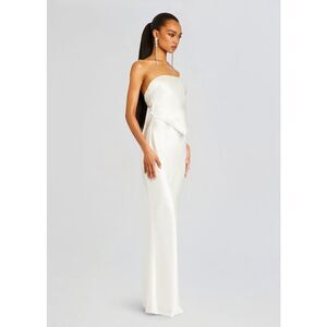 Embrace your feminine allure our Skye Dress. This strapless gown features a unique draped bodice and a flowing skirt that moves gracefully with every step. Ideal for prom, weddings, or any special occasion, this dress is sure to turn heads. Shown here in White.