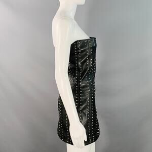 RETROFETE Size S Black Silver Leather Strapless Crystal Studded Mini Dress