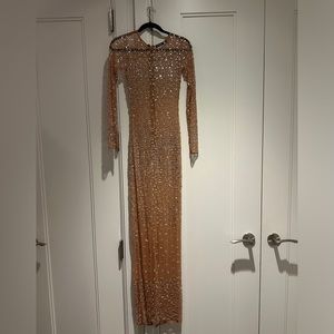 RETROFETE Vinci dress Gown in Silver & Nude w crystals Color: size XS