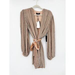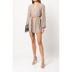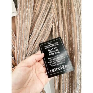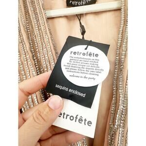 RETROFÉTE Gabrielle Sequin Tie Waist Dress In Silver Nude Blush XS NEW