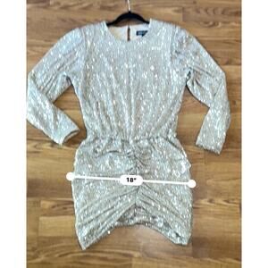 RETROFÊTE Gold Flynn ruched sequined tulle mini dress size L