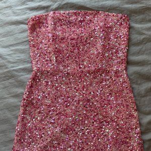 RETROFÊTE Heather Strapless Sequin PINK Dress