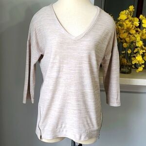 Very cute casual top, 2 exposed zippers. nice fabric. Size medium. pit to pit flat measurement is 22". Sleeves are 12". top to bottom length is 27.5:. Good used condition. Consider making a bundle and get an even better offer.