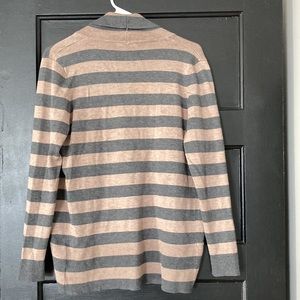Excellent used condition with no stains, tears, or pilling. Brown and grey striped cardigan. No buttons or pockets. Smoke/pet free home.
