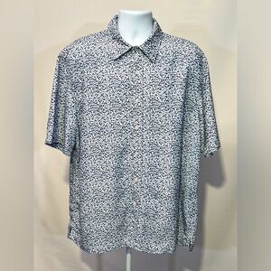 REUNION Men’s cadet blue droplets design short sleeve shirt size L.