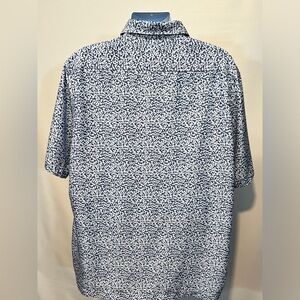 Men's cadet blue droplet design short sleeve button down shirt from REUNION, size L.